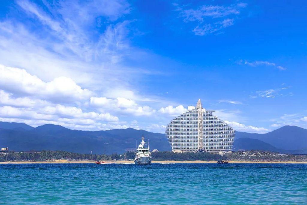 酒店建筑设计与迪拜帆船酒店一脉相承,由英国知名设计公司Atkins负责概念设计,主楼高达146米,外观帆船造型华丽时尚,伫立于风景旖旎的海棠湾边。